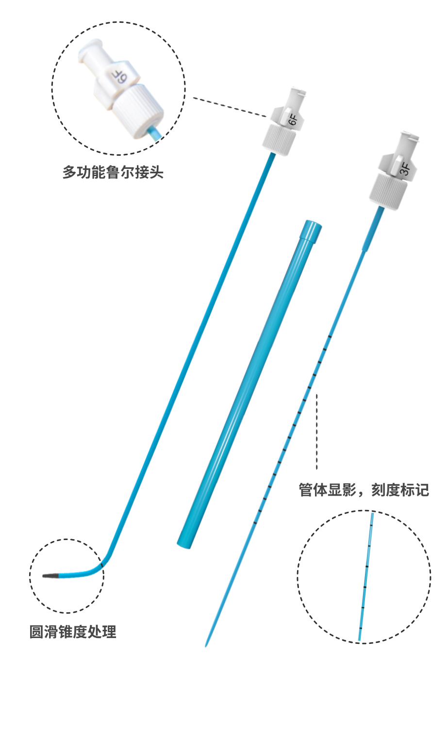 管體有刻度標記及加強顯影,方便及時掌握管體進入人體內的位置;